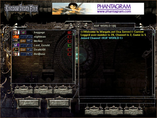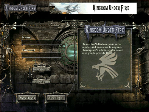 Eure Internetverbindung steht, ihr habt Kingdom under Fire gestartet, eine Verbindung zum WarGate aufgebaut und