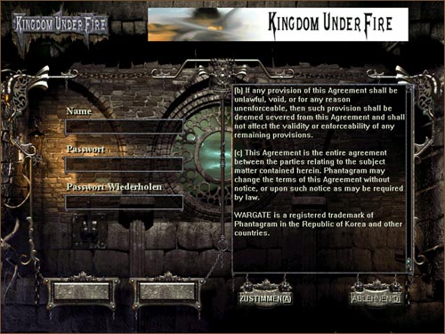 Eure Internetverbindung steht, ihr habt Kingdom under Fire gestartet, eine Verbindung zum WarGate aufgebaut und